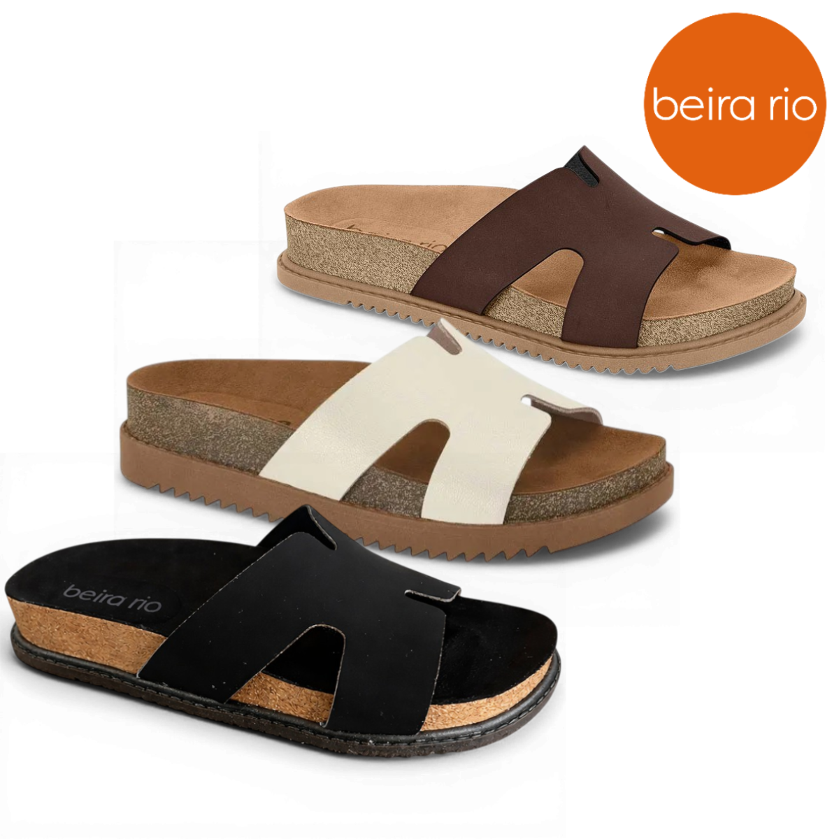 BEIRA RIO – Papete Feminina Beira Rio Slide em H Confortável EVA Antiderrapante