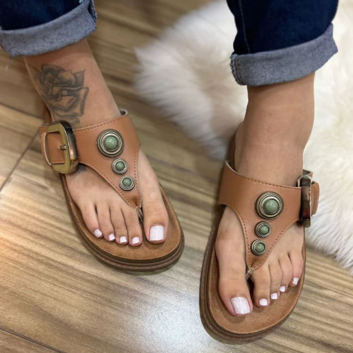 Cabedal em Napa:O cabedal em napa confere um acabamento premium à sandália, além de ser resistente e fácil de limpar. A napa imita perfeitamente o couro, trazendo sofisticação sem perder a funcionalidade.