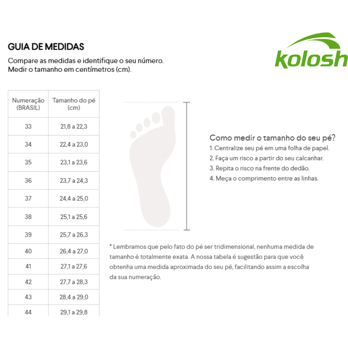 A troca de calçados por numeração, cor ou modelo poderá ser solicitada, desde que o produto esteja nas mesmas condições descritas acima. Recomenda-se que o calçado seja provado apenas em superfície limpa e interna, evitando o uso em áreas externas antes da decisão pela troca ou devolução.