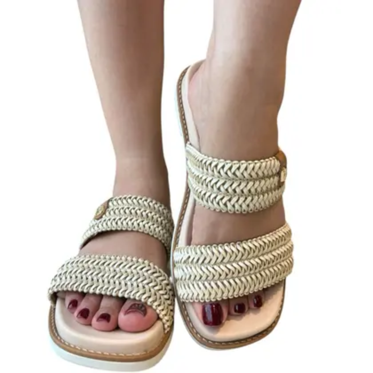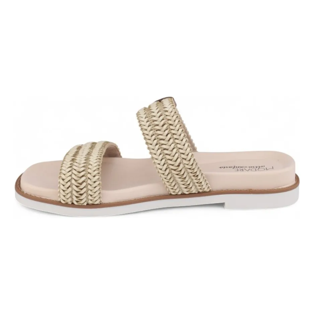 MODARE – Sandália Feminina Papete Creme Tiras Ultraconforto