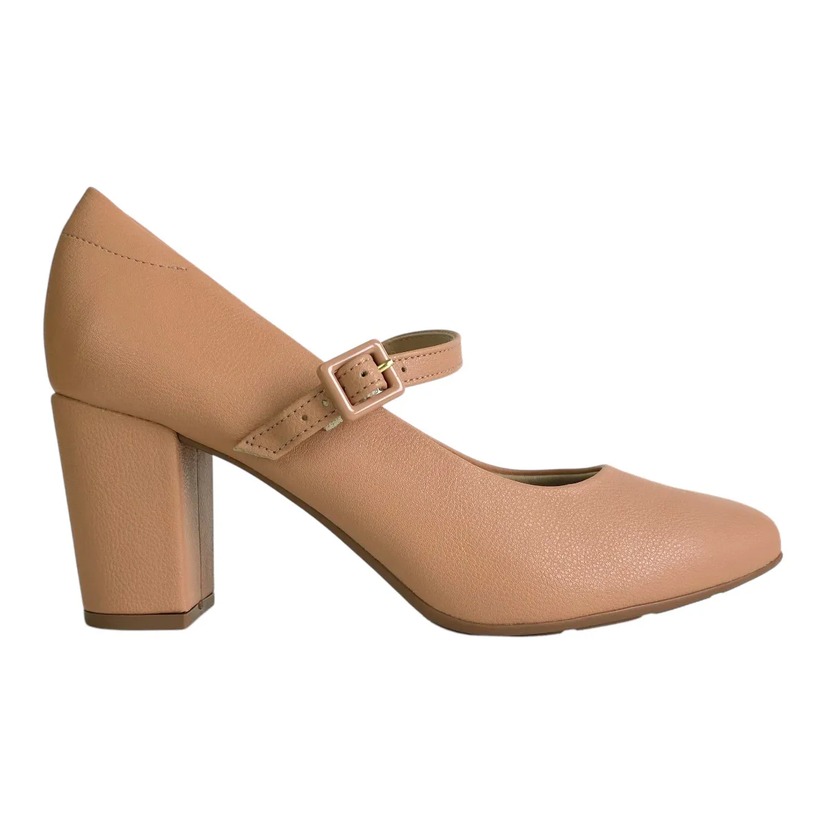 Sapato Feminino com salto grossoestilo bonecafechamento em fivela, delicado e confortável.