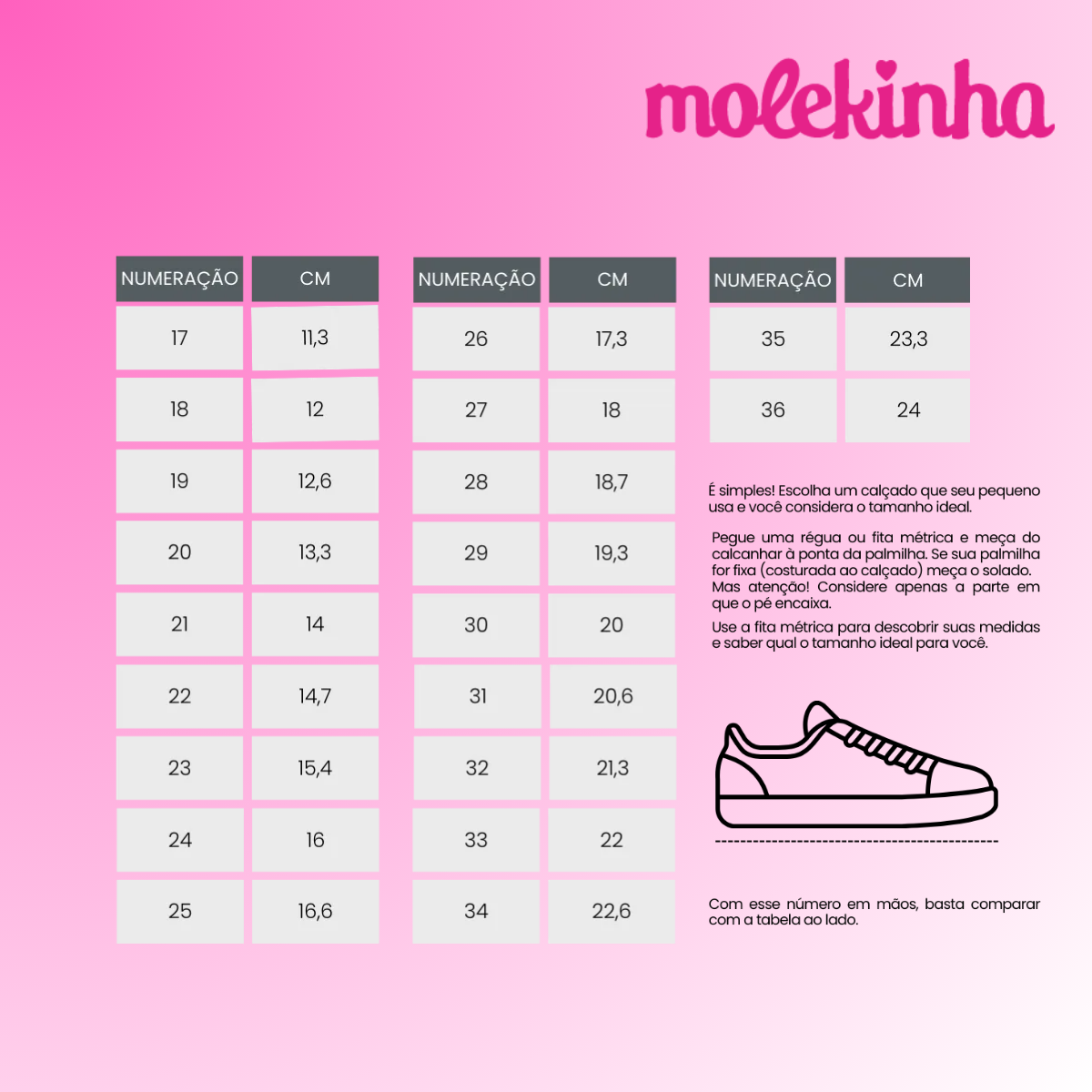 A troca de calçados por numeração, cor ou modelo poderá ser solicitada, desde que o produto esteja nas mesmas condições descritas acima. Recomenda-se que o calçado seja provado apenas em superfície limpa e interna, evitando o uso em áreas externas antes da decisão pela troca ou devolução.